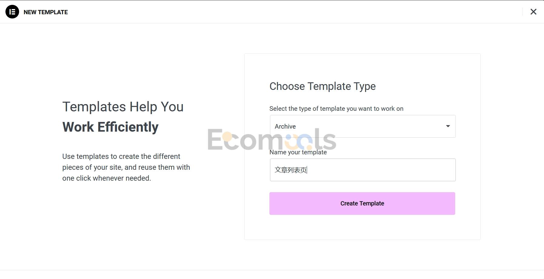 我们选择Archive模板,然后输入我们的模板名。点击“Create Template”按钮。