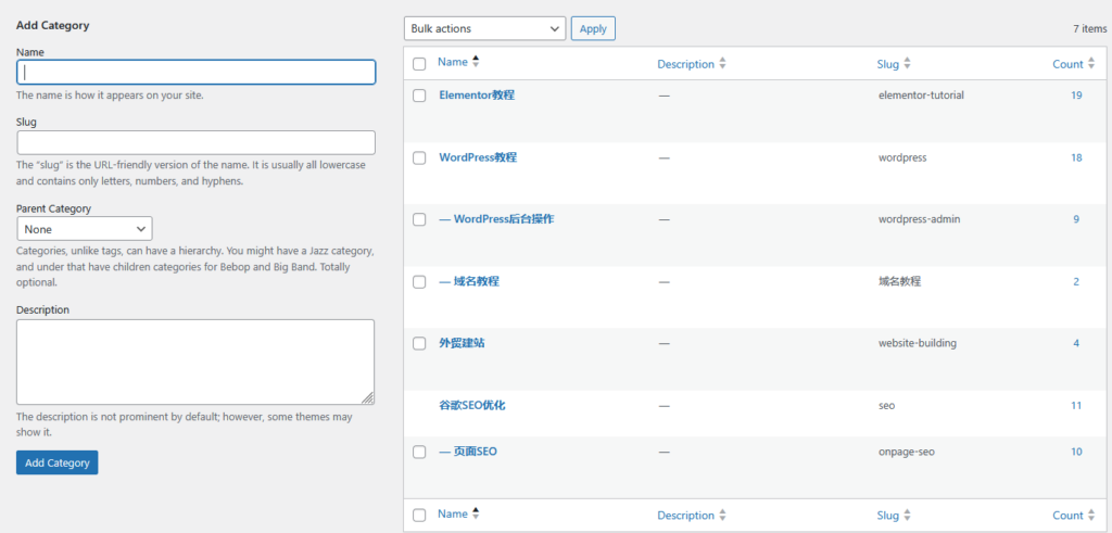 WordPress后台操作教学(小白也能轻松学会) 欢迎来到WordPress后台基础操作教学。掌握WordPress的后台操作意味着更少的失误和更高的工作效率。如果你是刚搭建好一个WordPress网站但是无从下手,那么本教程就是专门为你量身定制的。这篇WordPress后台基础操作教程会涉及我们WordPress后台面板各个选项卡的操作,会带你一步步掌握如何使用WordPress后台发布文章、创建页面、制作分类、设置主页等核心操作,帮助你轻松管理网站内容,开启你的在线创作之旅。更加高级的网站安全性能优化和安全防护教程可以看这篇更加全面WordPress系列教程。 快速导航 1 登录WordPress后台 访问 yourdomain.com/wp-login.php,输入管理员账号和密码进入到WordPress网站后台 WordPress默认的后台登录链接都是/wp-login.php。我们可以使用WordPress插件来更改我们的默认后台登录地址来提升网站的完全性,降低被黑客攻击的风险。WP后台登录地址可以通过更改网站代码或安装插件来更改,但是一般都推荐使用插件更改(比如WPS Hide Login),这样可以避免因为不懂代码乱改导致网站崩溃。 详细教程 2 更改永久链接 永久链接应短且包含核心关键词,避免日期、数字等无关信息,以提升可读性和排名潜力。 登录 WordPress 后台,进入“设置(Settings) → 固定链接(Permalink)”,你可以选择多种 URL 结构。为了简洁和利于谷歌SEO,建议使用“文章名称”结构(Post name)。修改后点击“保存更改”生效。若网站已上线,务必通过插件或服务器规则为旧链接设置 301 重定向。 详细教程 3 WordPress仪表盘介绍 左侧初始菜单包括:文章(Post)、媒体(Media)、页面(Page)、评论(Comments)、外观(Appearance)、插件(Plugins)、用户(Users)、工具(Tools)、设置(Settings) 仪表盘是WordPress网站管理的中心控制面板。它是网站管理员进行网站日常管理和发布内容的关键工具。下面我们来熟悉一下日常中常用的主要功能。 详细教程 4 发布文章 进入 文章 → 新建文章:填写标题和正文,设置分类、标签和特色图片 WordPress是一个CMS系统,其中最重要的功能就是发布内容。我们这篇文章主要介绍如何在WordPress中发布文章。我们这里会介绍如何使用经典编辑器、块编辑器和Elementor来编辑文章。 详细教程 5 制作、编辑页面 页面适用于固定内容(如“关于我们”、“解决方案”、“服务”) WordPress可以让我们设置父页面/子页面形成层级结构;如果主题或页面构建器(如 Elementor)提供模板,可以直接套用,保持设计一致。也介绍了如何使用经典编辑器、块编辑器和Elementor编辑器来制作页面、以及如何快速复制页面、将特定页面设置为主页。 详细教程 6 文件&内容上传 进入 媒体 → 添加,上传优图片和PDF(安装WordPress插件可以自动优化上传的图片) 登录 WordPress 后台后,前往左侧菜单选择 “媒体 (Media) → 媒体库 (Library)”;接着点击页面顶部的 “添加新媒体 (Add New Media File)” 按钮。你可以将文件直接拖拽到上传区域,或者点击 “选择文件 (Select File)” 按钮从本地电脑选择上传。 详细教程 7 管理分类 分类(Category)用于按主题组织文章,可有层级;标签(Tag)是描述内容的关键词,无层级结构。 网站的分类(Categories)结构建议提前规划,保持主题清晰,做好内链优化;标签(Tags)数量宜精不宜多,避免只用一次的“孤立标签”,以免降低导航体验。 详细教程 8 侧边栏设置 推荐放置逻辑清晰、有助于导航或业务转化的小工具,避免内容杂乱干扰用户注意力。 在后台依次进入“外观 → 小工具”,将可用组件拖入“主侧边栏(Main Sidebar)”区域即可自定义侧边栏内容。我们也可以使用Elementor来制作更美观的侧边栏。 详细教程 9 菜单导航栏设置 取消“自动添加新页面”可避免无意中的页面混入导航;用拖放方式创建子菜单提高结构清晰度。 导航栏是用户进入网站后的“路线图”,直接决定了访客能否快速找到所需信息。一个结构清晰、分类合理的导航,不仅能降低跳出率、提升停留时间,还能引导用户访问核心页面(如产品、服务、联系页面),从而提高转化率。 详细教程