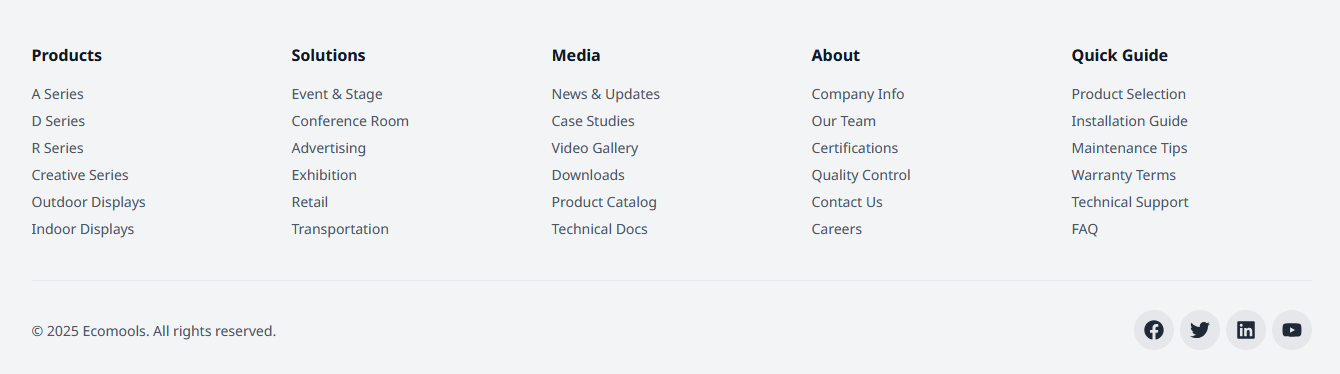 包括在Footer里面,我们会将一些次要链接放到Footer的菜单,一般会包括隐私政策、退款政策、物流发货、FAQ这些页面,根据实际情况添加即可。