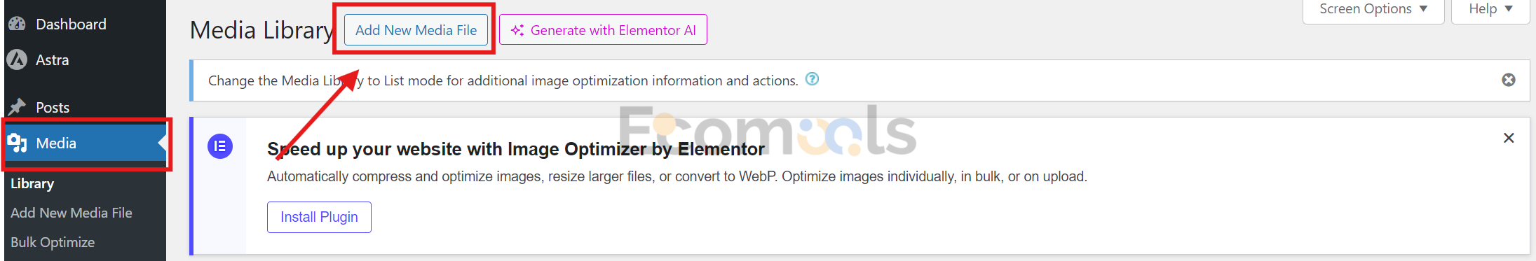 - 点击内容编辑器中的“Add Media”(添加媒体)按钮添加文件。